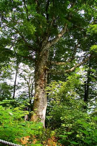 ![]() 白神山地の特徴:人為の影響をほとんど受けていない原生的な ブナ天然林が世界最大級の規模で分布している。 |