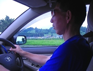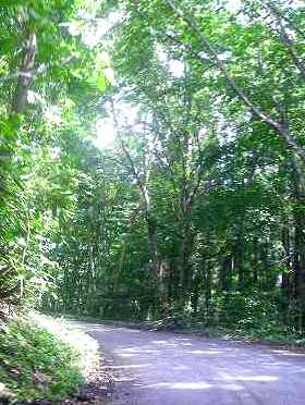 ![]() 体が左右上下に激しくゆれ、手には豆ができてしまい、原生林を見る事を忘れてしまう。 窓は大きく開け森林のオゾンを車中に充満させてドライブ。 |