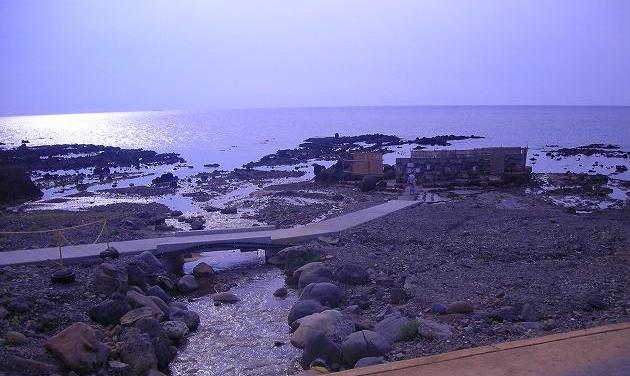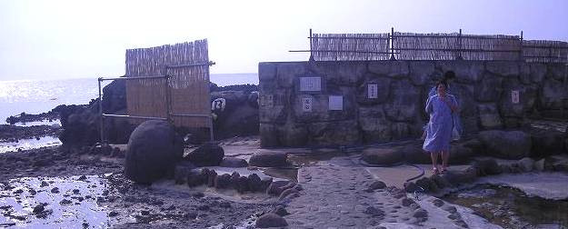 ![]() 日本海と一体化した絶景の露天風呂(茶色でしょっぱい)に浸り、これで不老不死なり。 遠い水平線と潮騒に耳をかたむける。シンプルがいい! |