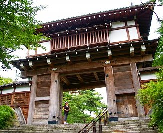 ![]() 左)長坂門を通ると御番頭局が見えて、その左上にあるのが久保田城の表門(一ノ門) 右)表門の下手には侵入者を警戒する「御物頭御番所」*随一残った藩政時代の建物 |