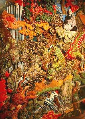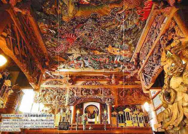 ![]() 天井に彫られた雲蝶の世界*撮影禁止の為パンフより |