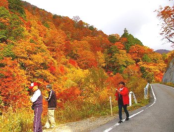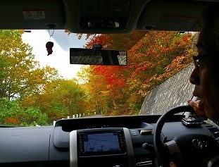 ![]() 車内は・・わあ・・・わあ・きれーい!の声が・・ドライバーは紅葉を横目で見てください! |