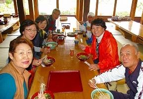 ![]() 白川郷西南外れの「忠兵衛」で昼食ですが・・団体さんでいっぱい! つゆがなまぬるく、味もイマイチ!口に合わないと腹も膨れない |