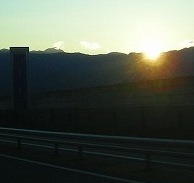 ![]() Am5:45 恵那SAは寒い2℃だ、 満月が西の空に! 6:30 南アルプスから朝日が昇る*アルプスに雪が光る |