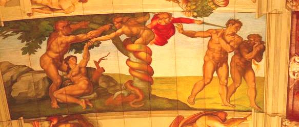 ![]() アダム&イブが禁断の果実を探して・・蛇が出現(リンゴではない・・葉から見たらイチジクだそうだ) |