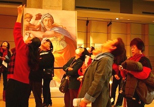 ![]() 日本最大の「陶板名画美術館」 学芸員の解説付 システィーナ礼拝堂天井画の説明。首が疲れた〜! |