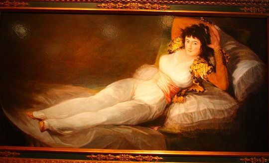 ![]() 近代的な裸婦の先駆といえるゴヤ 「着衣のマヤ(1800頃)」 もう一枚「裸のマヤ(」があり、密かに「着衣のマヤ」とは別の部屋に掲げて一人見ていたのではないか? |