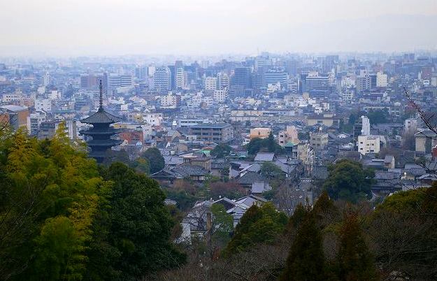 ![]() 二人の銅像が眺めている京都*左の五重塔は八坂の塔です |