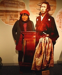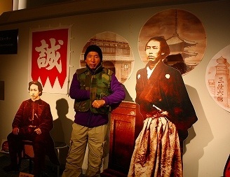 ![]() 8Kgのベストを着込んで龍馬と・・・ 慶応3年11月15日、見廻組肝煎・桂早之助が脇差(長さ42.1Cm)で、 京都・近江屋の一室で坂本龍馬を斬ったといわれている。 |