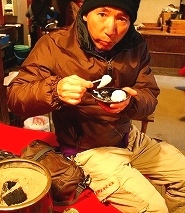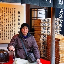 ![]() 「天神さん」の総祀・北野天満宮のお膝元にあり、太閤秀吉公が開いた北野大茶会の際用いられた長五郎餅。 「列長く長五郎餅初天神」 もっちりした薄皮の、甘さ控えめなこしあん2個をぺろりと平らげました。 |