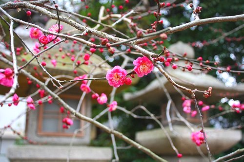 ![]() 早咲きの梅が寒い境内に咲いていました Masami撮影 |