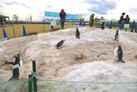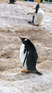 ![]() ジェンツーペンギンのよちよちウォーク*雪は白馬村より提供 |