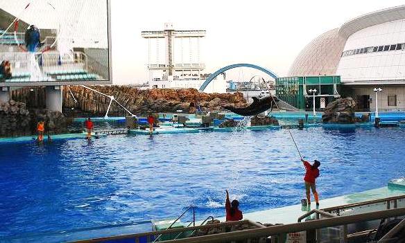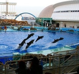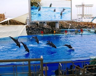 ![]() 北風にさらされても楽しいバンドウイルカのショウでした |