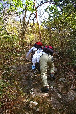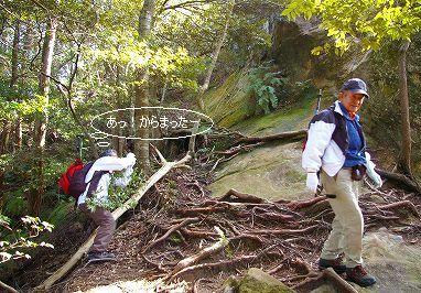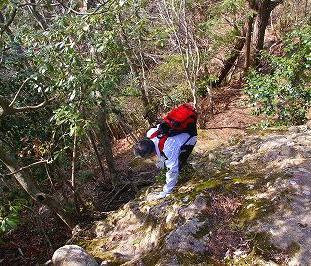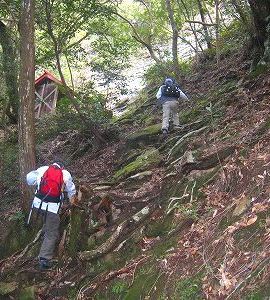 ![]() 役行者に見送られ 「えっ!」ここを登るのか? 岩屋本堂の上に出る |