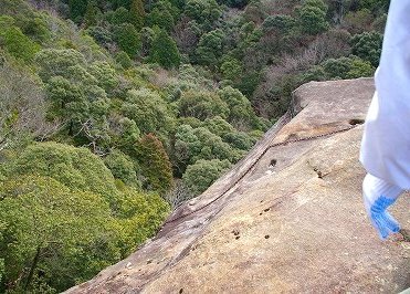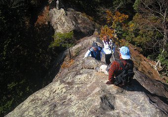 ![]() 鞍掛岩*登った事は良いがどうやって降りよう!足がすくんで立つのは危険!左右は即死の断崖絶壁! |