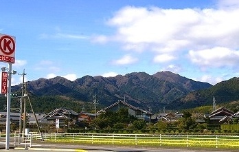 ![]() 松坂ICから程近いコンビにで昼食のおにぎりを買い求めた。菜の花畑の奥に連なる峰を一山越えた更なる奥に向かう。 |
