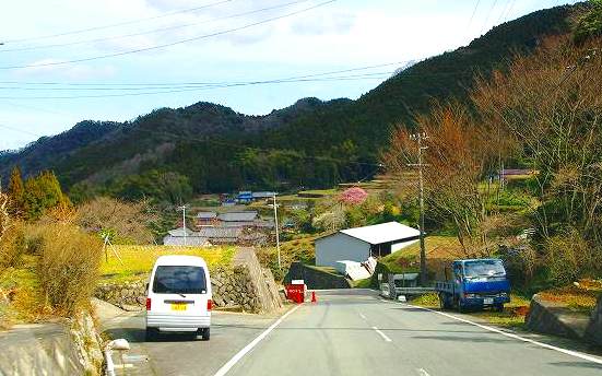 ![]() 段々畑のある長閑な里山風景を眺めて走る |
