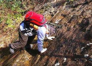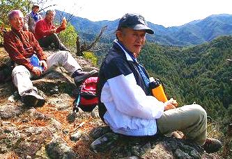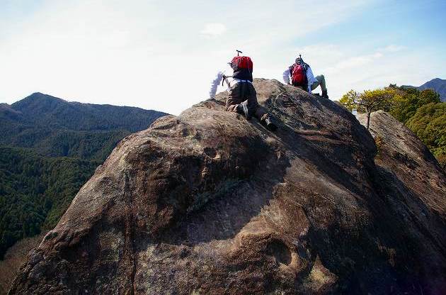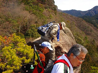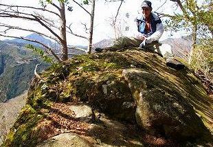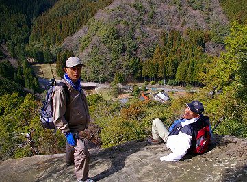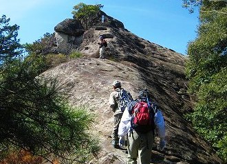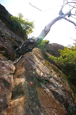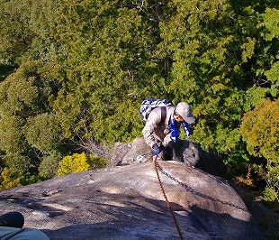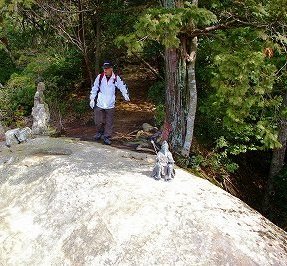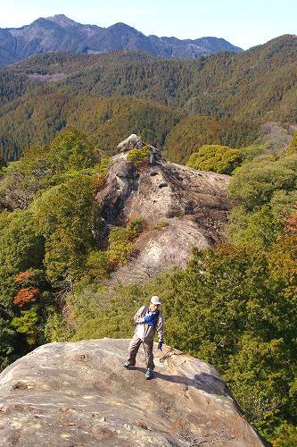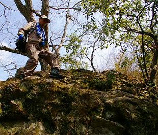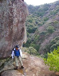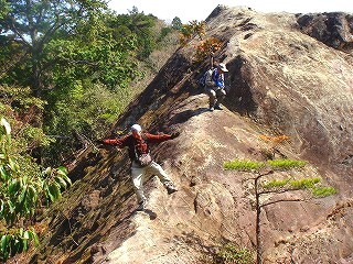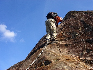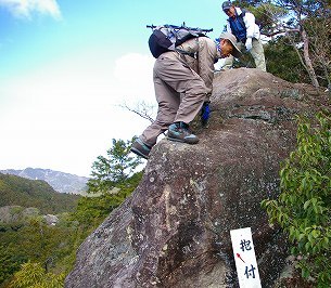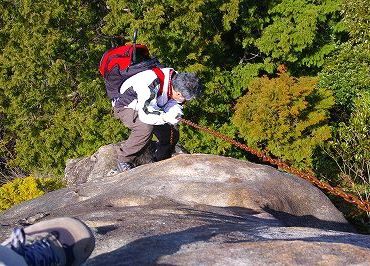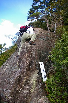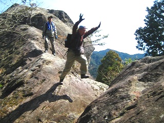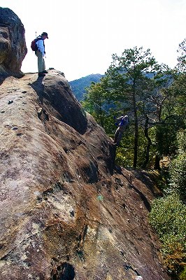 ![]() 抱付岩をよじ登って意気揚々と上がってきたところ |