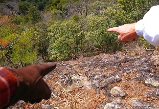 ![]() 愛染明王↑ ![]() 白く光った崖が「油こぼし」である |