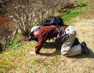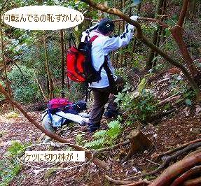 ![]() 前かがみになり過ぎ、お茶にストックをズリ落とす |