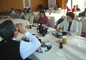 ![]() ![]() ![]() 酒蔵の中・・・試飲に試食と忙しい*仕込みにチヤレンジ?ビンの検査は大変そう・・ |