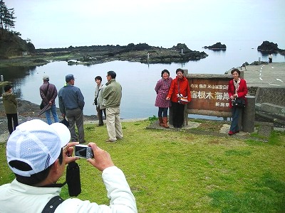 八幡温泉=沢崎鼻灯台(佐渡最西端の灯台)=宿根木(歴史ある町並みを散策)=小木(たらい舟体験)