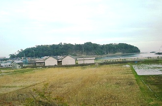 ![]() 夕日の森・森林公園と真野湾(北朝鮮の潜航艇の入った湾) |