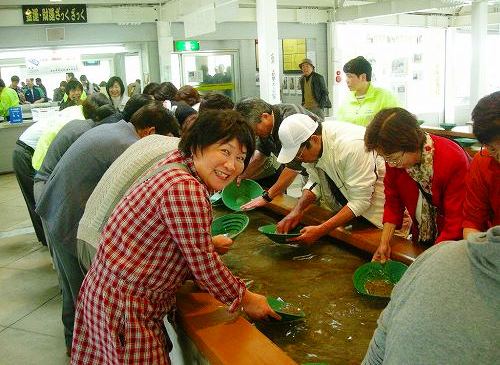 =西三川ゴールドパーク(砂金取り体験700円)=佐渡歴史伝説館(不参加)=尾畑酒造(試飲・見学)
