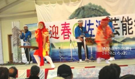 ![]() 甘酒と焼酎のサービスもあり、佐渡のいろいろな芸能を堪能しました。回りは年配の方ばかり・・・ |