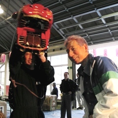 ![]() 獅子頭にかんでもらうと1年病気しないそうです。是非やって・・・頭を出しました。 |