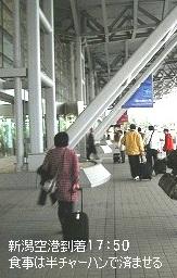 =両津港〜<フェリー・2等船室>〜新潟港=<送迎バス>=新潟空港→中部国際空港(20:30〜21:30)