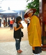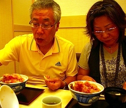 ![]() 高岩寺に南無〜 魚屋さんが店の奥で食堂を経営、TV撮影もあった主人と。 |