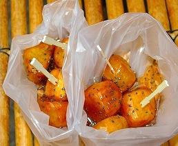 ![]() 「大学いも」の専門店 8個\548 甘くてカリカリしてて・・「栗(九里)より(四里)うまい」で9+4=13、十三里です。 |