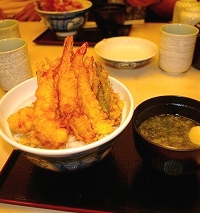 ![]() 天丼\500+味噌汁\50で食べ切れません えび5匹・野菜の天ぷら |
