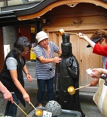 ![]() ![]() ![]() 江戸時代最大の火事「明暦の大火」(1657年 )で、当寺の檀徒の一人「屋根屋喜平次」は妻をなくし、 その供養のため、「聖観世音菩薩」を高岩寺に寄進。 この聖観世音菩薩像に水をかけ、自分の悪いところを洗うと治るという信仰がいつしかうまれ、これが「洗い観音」の起源です。 永年タワシで洗っていた聖観世音菩薩の顔がすりへったので、 平成4年11月27日、この仏像にご隠退をいただき、あたらしい聖観世音菩薩の開眼式を執行。 同時にタワシを廃止し布で洗うことにしました。 |