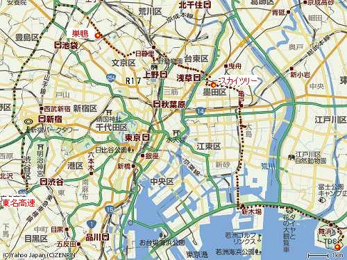 ![]() 墨田区のスカイツリーから巣鴨までは、下町の風情が残る街道をのんびり走る。 |