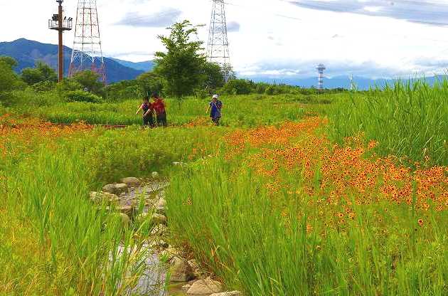![]() 近くの山は養老山脈 湿地帯にいろんな花が咲いていました。 |