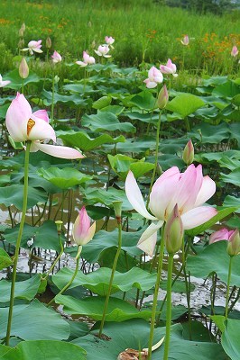 ![]() 仏教といっしょに伝わった蓮(蓮華>れんげ) ♪ひ〜らいた ひ〜らいた 何の花がひ〜らいた れんげの花が ひ〜らいた♪ 「蓮は泥より出でて泥に染まらず」の中国のことわざ・・・ |