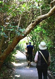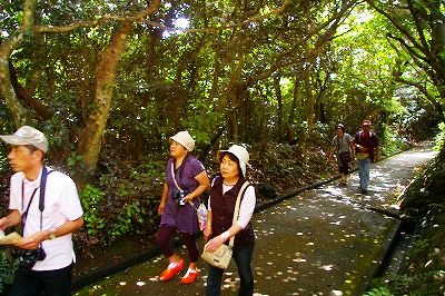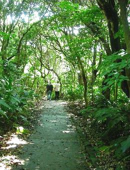 ![]() ![]() 延長2,000mにもおよぶ遊歩道は、椿が覆い茂り、まるで椿のトンネルをくぐっているかの様になっています。 |