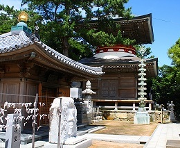 ![]() ![]() 多宝塔と大師堂 寺宝の「高野大師行状図画」は弘法大師の一生を十巻の絵巻にしたもので五巻残っています。 |