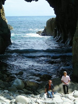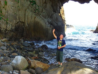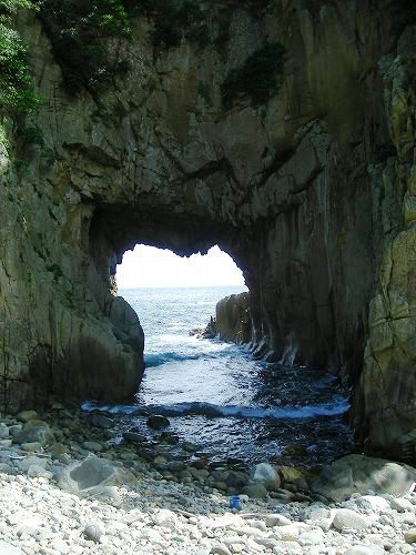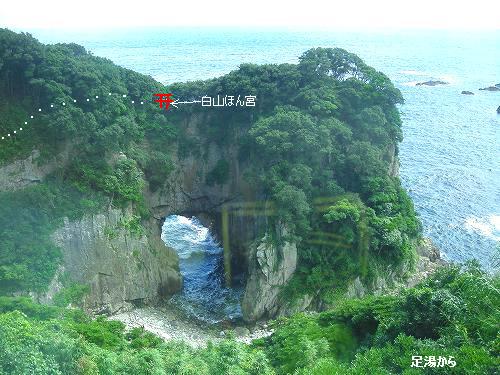 ![]() 海蝕による洞窟、洞門、白山洞門はその中でも最も大きく、高さ16m、幅17mの大きさがあり、 花崗岩洞門では日本一の規模と言われています。 |