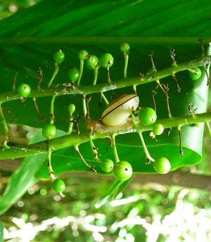 ![]() 白山洞門への入り口を入るとむせる様な蒸し暑さにカタツムリがゆっくりはっていた |