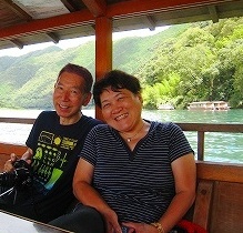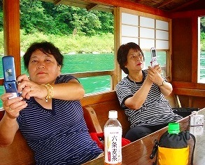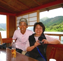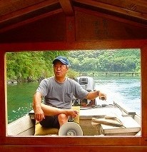 ![]() 乗り込んで出発待ちに、吉本芸人「ほっしゃん」似の船頭さんが「うな丼\1800」を進めに来た。 Masamiが川えびは付いているのか尋ね 「大工の殿さん(Yukuo)」が、「本当に四万十産?大きさは小さいのか、川えび3匹付けてOK」 |