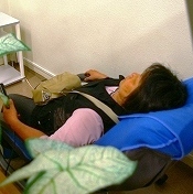![]() 疲れが溜まっているので、すぐに夢の中へ落ち込んでいきます。 |