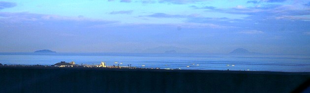 ![]() 対岸は山口県、愛媛県の伊予との伊予灘に浮かぶ島々は瀬戸内海国立公園である。 |