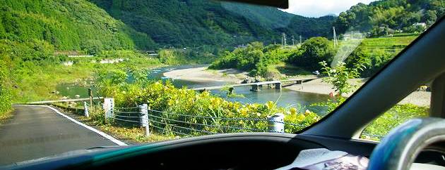 ![]() 美しい佐田沈下橋を車で渡り足摺岬へ(対岸は道が細く、道にも迷ってしまった) |