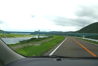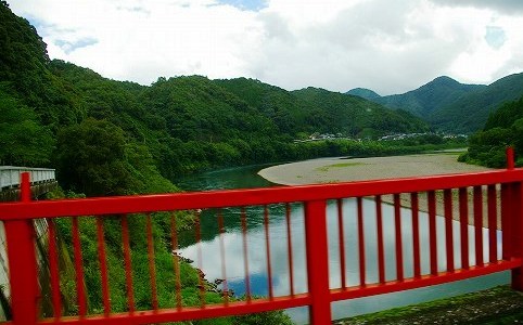 ![]() 四万十川の川巾が広くなり、広域農道が見える。 |