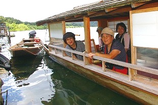 ![]() 駐車場を探すのに手間取りゴール!心配していた雨も上がり、6人貸しきりで乗船する。 |