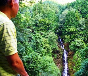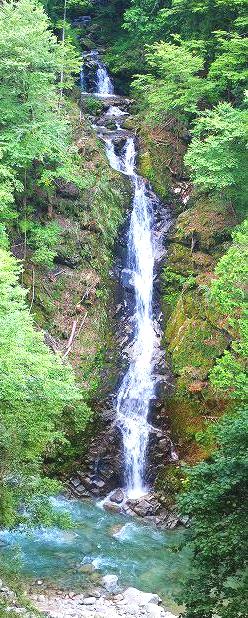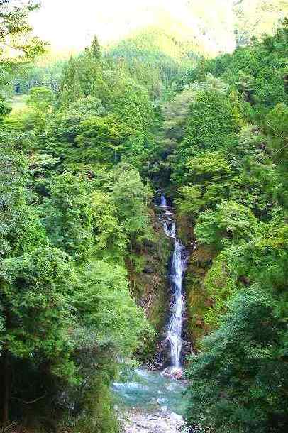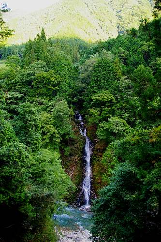 ![]() 周囲の樹木伐採で、上村川に全容を現した落差40mの不動の滝 * 恵那市上矢作町 |