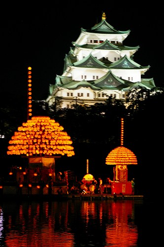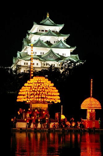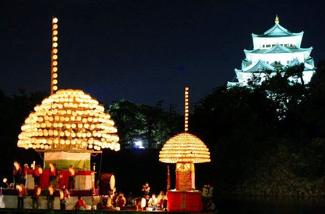 名古屋城のお堀に、377個のちょうちんを付けたまきわら舟が浮かんだ。 開府400年に合わせた今年限りの企画だそうです。 イベントは、堀川浄化を目指して活動する市民団体が中心となって、名古屋市と市民が実行委員会をつくり企画。